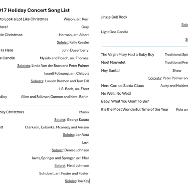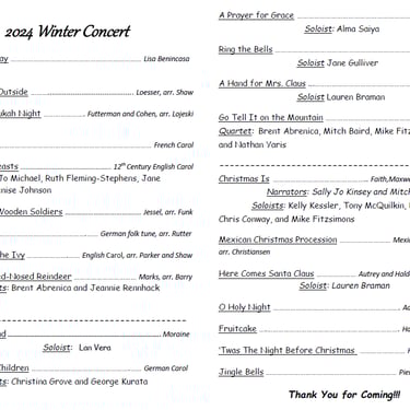 2023 Holiday Concert - Songs of Good Cheer Recorded on Dec 12, 2023 Click for YouTube links
