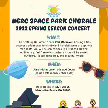 The Space Park Singers perform at various events and concerts, welcoming singers of all levels to join our vibrant chorale community.