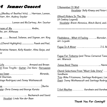 Our wonderful Librarian/Historian, George Kurata, has compiled A Brief History of Concert Programs