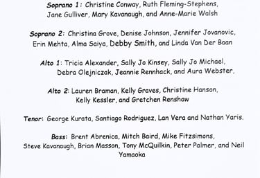 Our Tenor Tony McQuilkin collected detailed notes of our Spring 2026 songs: