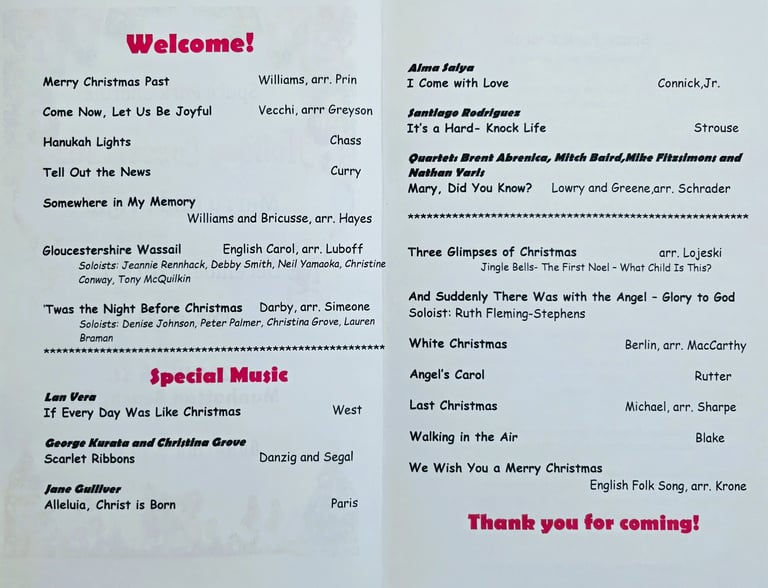 Librarian/Historian - George Kurata compiled the History of our Past Concert Program