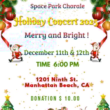 The Space Park Singers perform at various events and concerts, welcoming singers of all levels to join our vibrant chorale community.